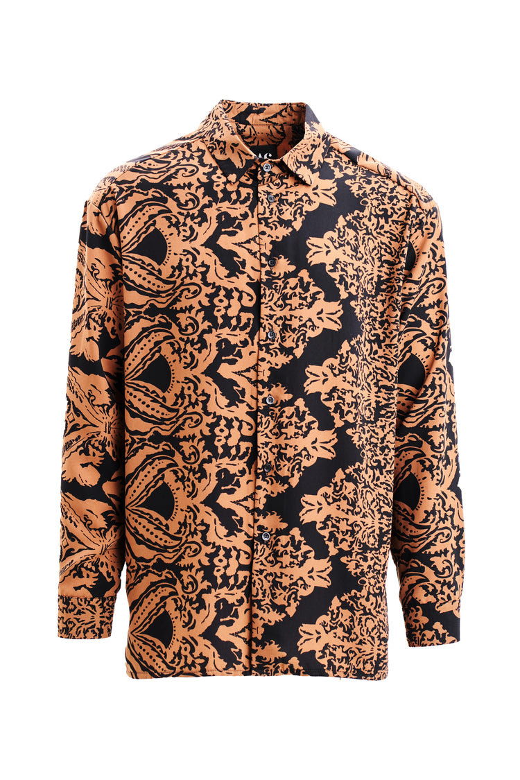 Cămașa caramel pune în valoare un imprimeu contrastant în tonuri calde, care se armonizează perfect cu negrul de bază. Este o piesă ideală pentru bărbații care vor un look rafinat, dar relaxat. Se potrivește ușor cu jeanși sau pantaloni eleganți, fiind potrivită atât pentru zi, cât și pentru seară.