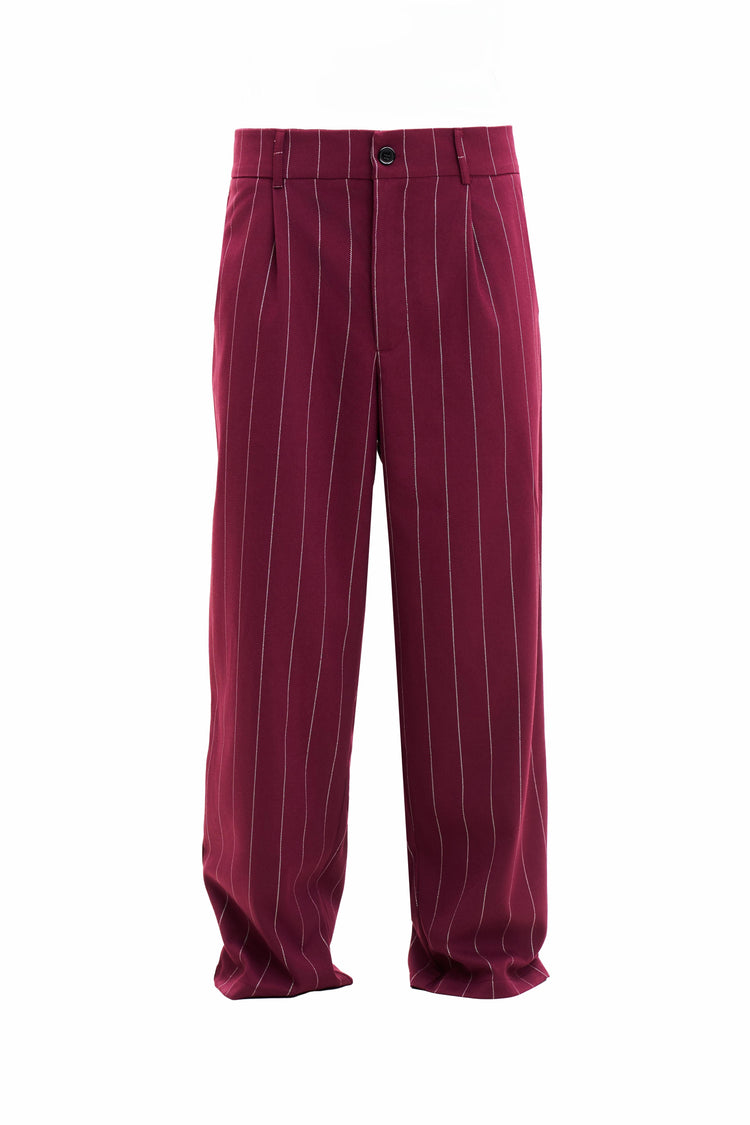 Pantaloni Bordo Lines, un model rafinat cu linii subțiri din fir auriu care adaugă un plus de eleganță. Nuanța bordo oferă profunzime și stil, iar designul echilibrat îi face ideali pentru ținute în care vrei să transmiți bun gust și prezență impecabilă.